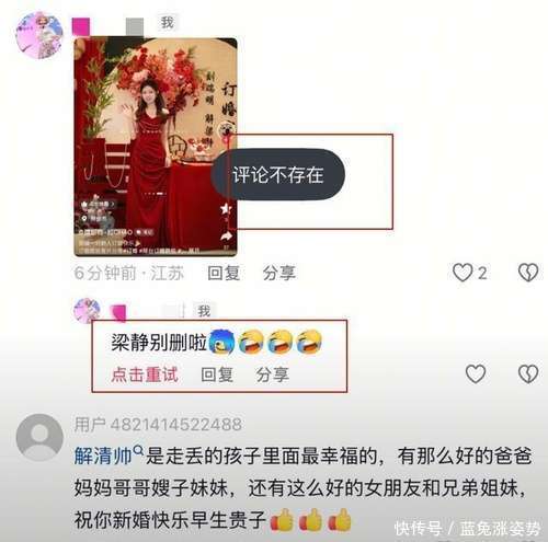 要说这解家,自从找回解清帅,那热度就没下去过。前脚刚忙完婚礼,后脚就有人爆料,解清帅的妹妹解梁静也订婚了!这消息来得猝不及防,要不是有网友手快,截下了邢台摄影师那组被秒删的照片,估计这事儿还得捂着。
